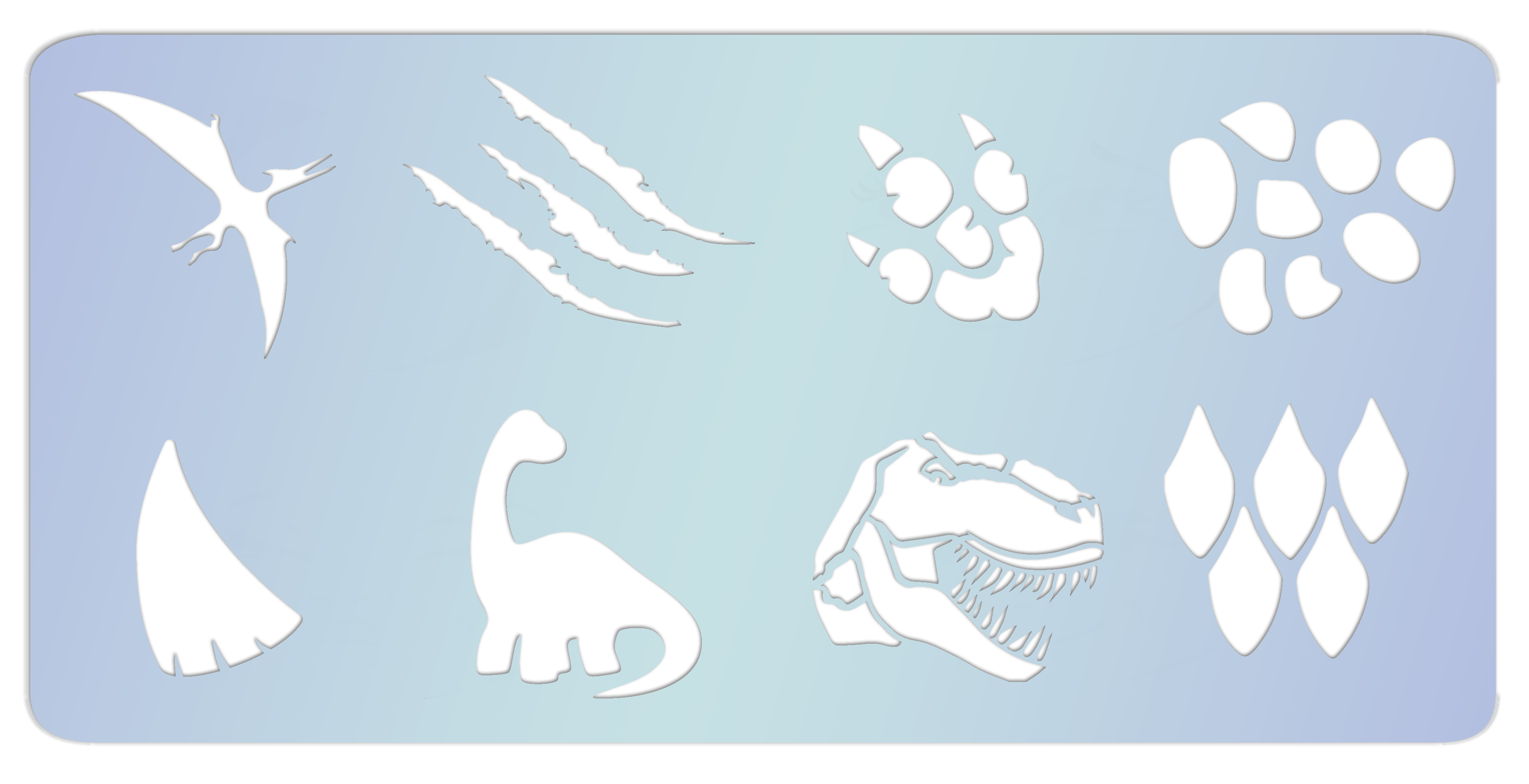 Scales, Horns, Mini Bronto, Mini Pterodactyl, Footprints, Scratches, T-Rex Face, Mini T-Rex.